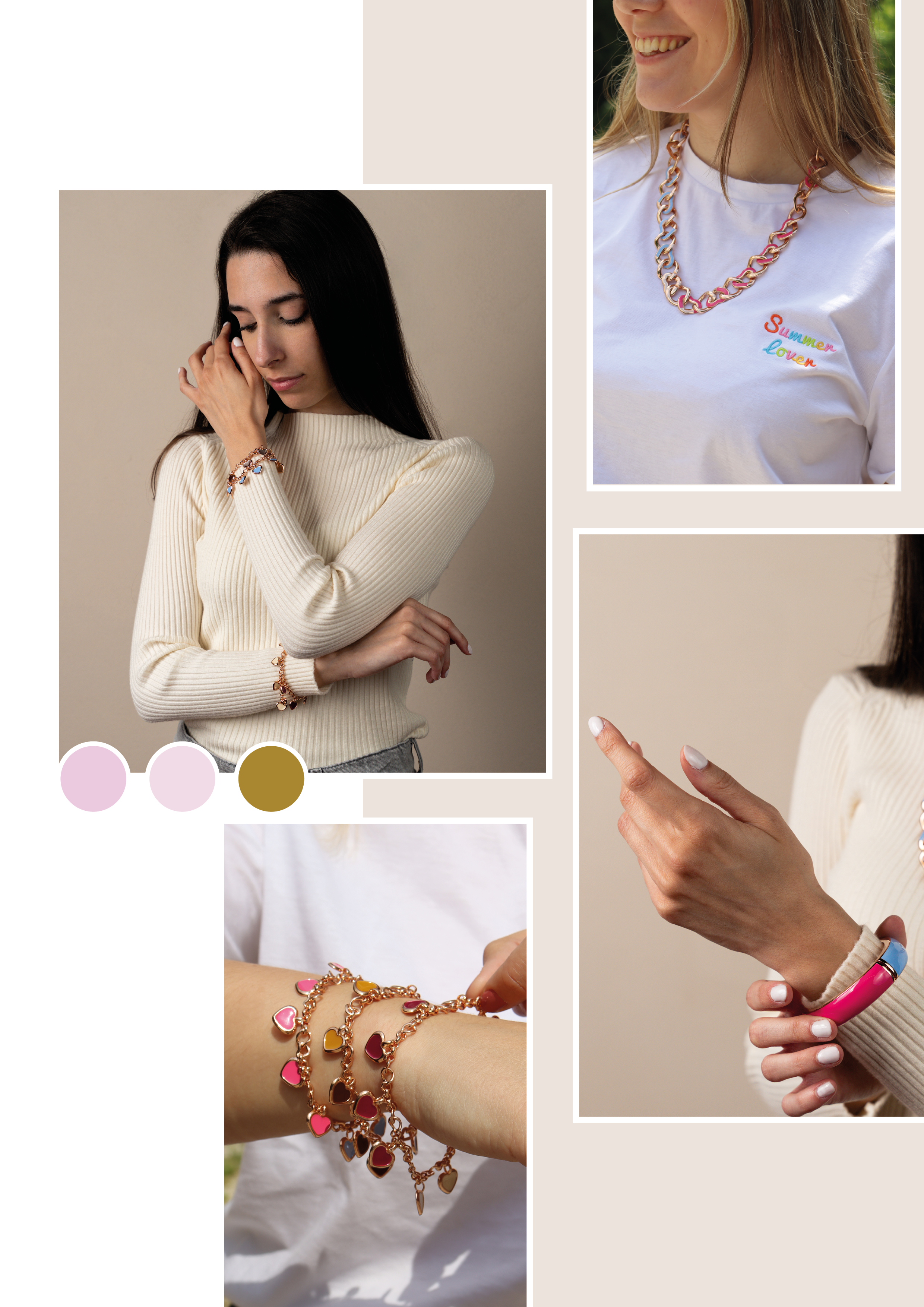 Il colore e la versatilità sono l’anima delle nostre creazioni: con un click, un solo bijoux può dare vita a innumerevoli combinazioni di colore, quasi per magia!